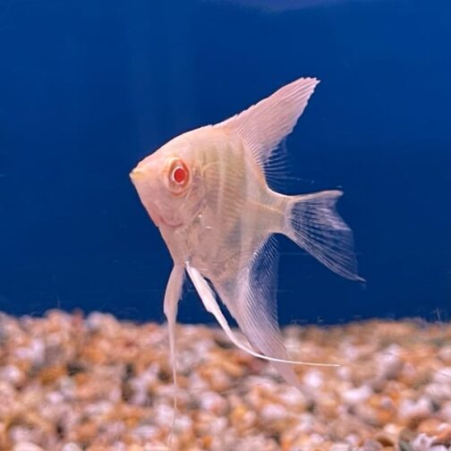 An “albino angel” typically refers to a variety of fish known as the albino angelfish. Angelfish are popular freshwater aquarium fish known for their distinct shape and graceful movements. Albino angelfish are a color variant of the common angelfish, characterized by their lack of melanin pigment, resulting in a white or pale pink appearance. They have red or pink eyes due to the absence of pigment in the iris.