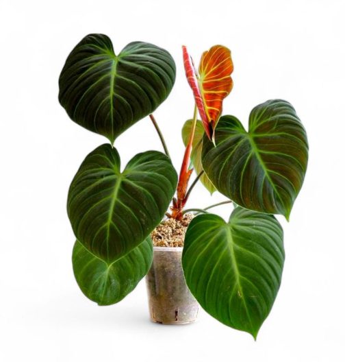 The Philodendron El Choco Red is a highly sought-after aroid known for its dramatic, velvety leaves with a deep green hue, contrasted by striking red undersides. Native to the rainforests of Colombia and Ecuador, this climbing philodendron brings a touch of exotic elegance to indoor spaces. Its popularity among collectors stems from its unique coloration and relatively manageable care requirements.