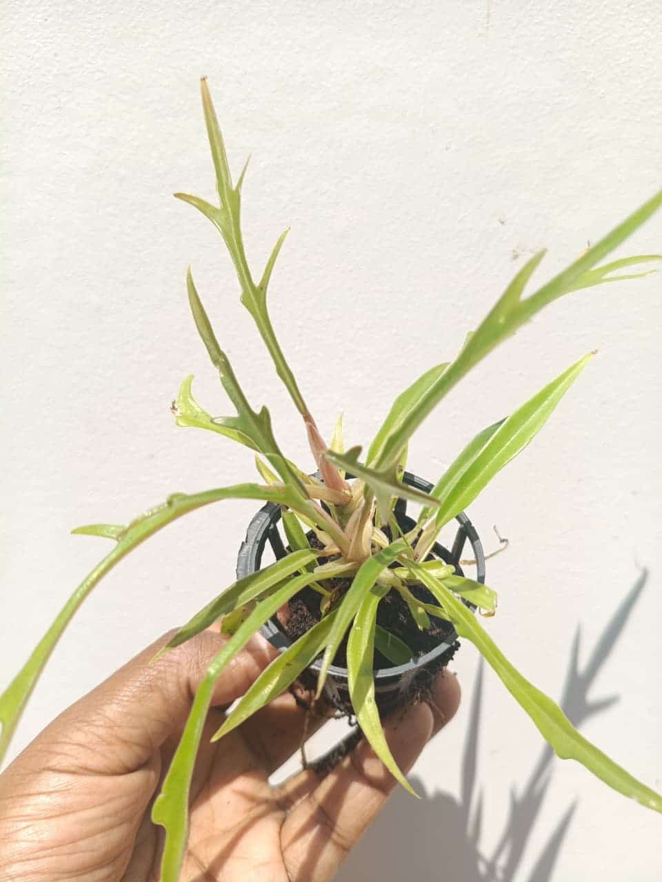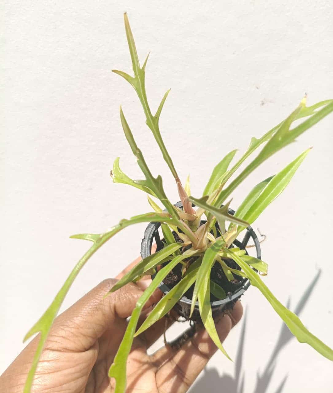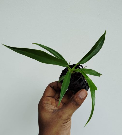 The Philodendron Tortum is an exotic and visually striking plant known for its unique foliage. It belongs to the family Araceae and is native to regions of South America, particularly Brazil. Its leaves are characterized by their elongated, narrow shape, resembling fingers or ruffled ribbons, which gives the plant an elegant and unusual appearance. The leaves can grow up to several feet in length, creating a dramatic effect.