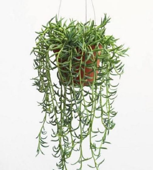 String of Bananas (Senecio radicans or Curio radicans) is a fast-growing, trailing succulent known for its banana-shaped leaves and cascading stems. It’s a popular choice for hanging baskets and indoor gardens due to its unique appearance and easy care.